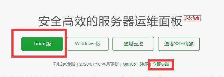 • 不要慌,冷静。如果下面的部分教程失效请去宝塔面板官网,点击Linux->立即安装